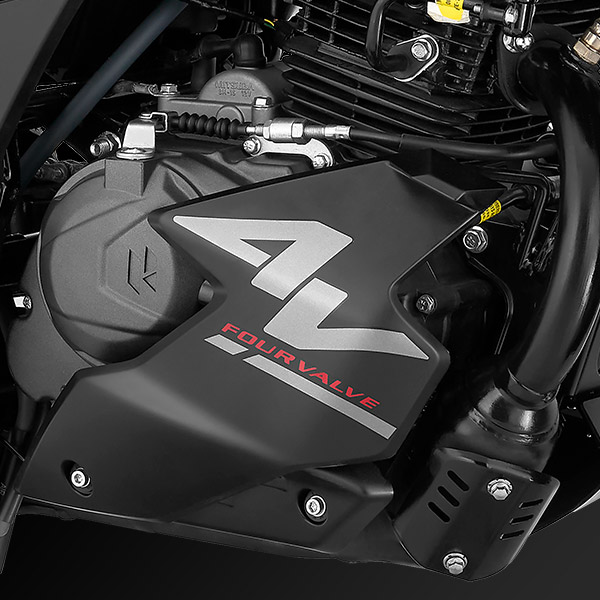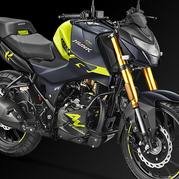 Su diseño robusto y compacto, con chasis tubular, hace de la Hunk 160R 4V, la motocicleta más segura, rápida y estable. Hero Hunk 160R 4V, cuenta con un motor de 163cc 4 válvulas, refrigerado por aceite, caja de cinco velocidades y una potencia de 16,63 hp @ 8500 rpm. Su velocidad de 0 a 60 km/h se logra en 4,4 segundos, siendo así una de las motocicletas más rápidas del segmento.
